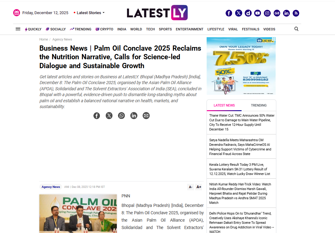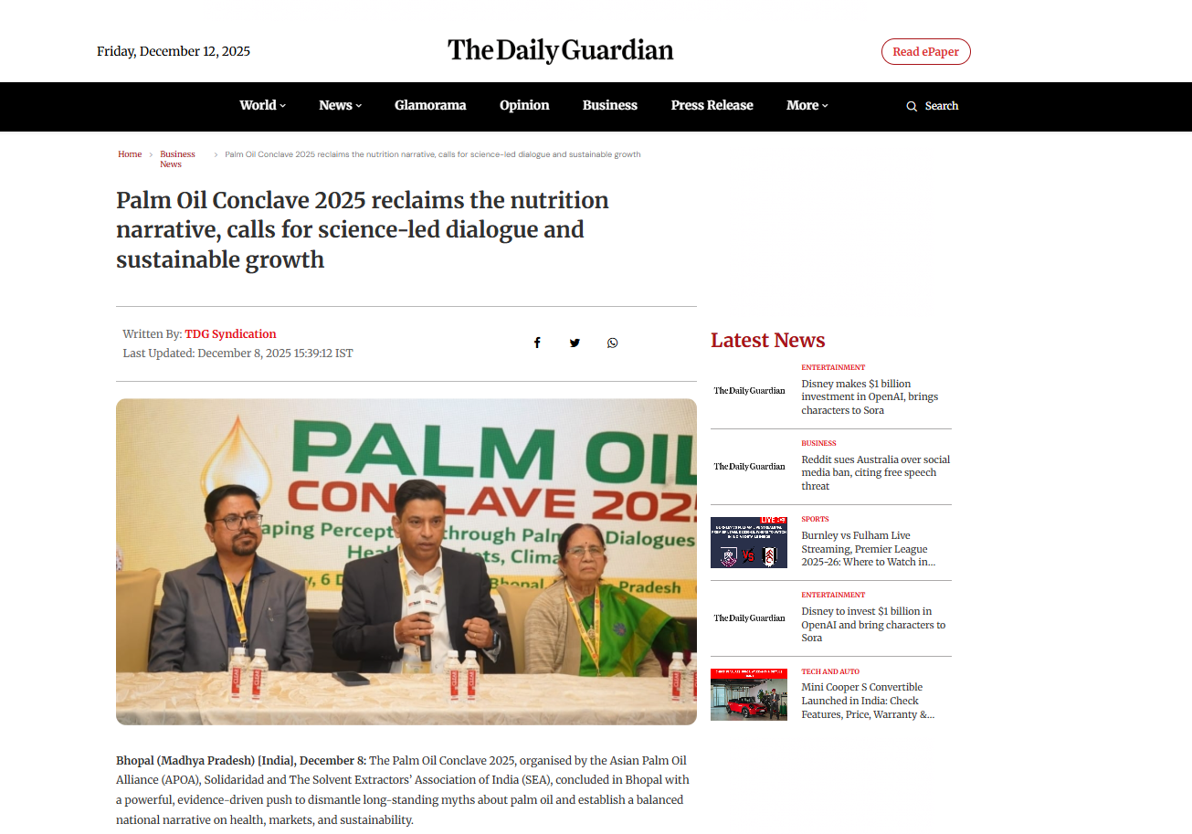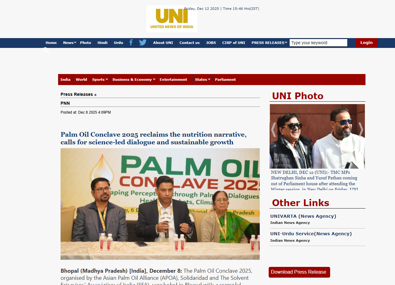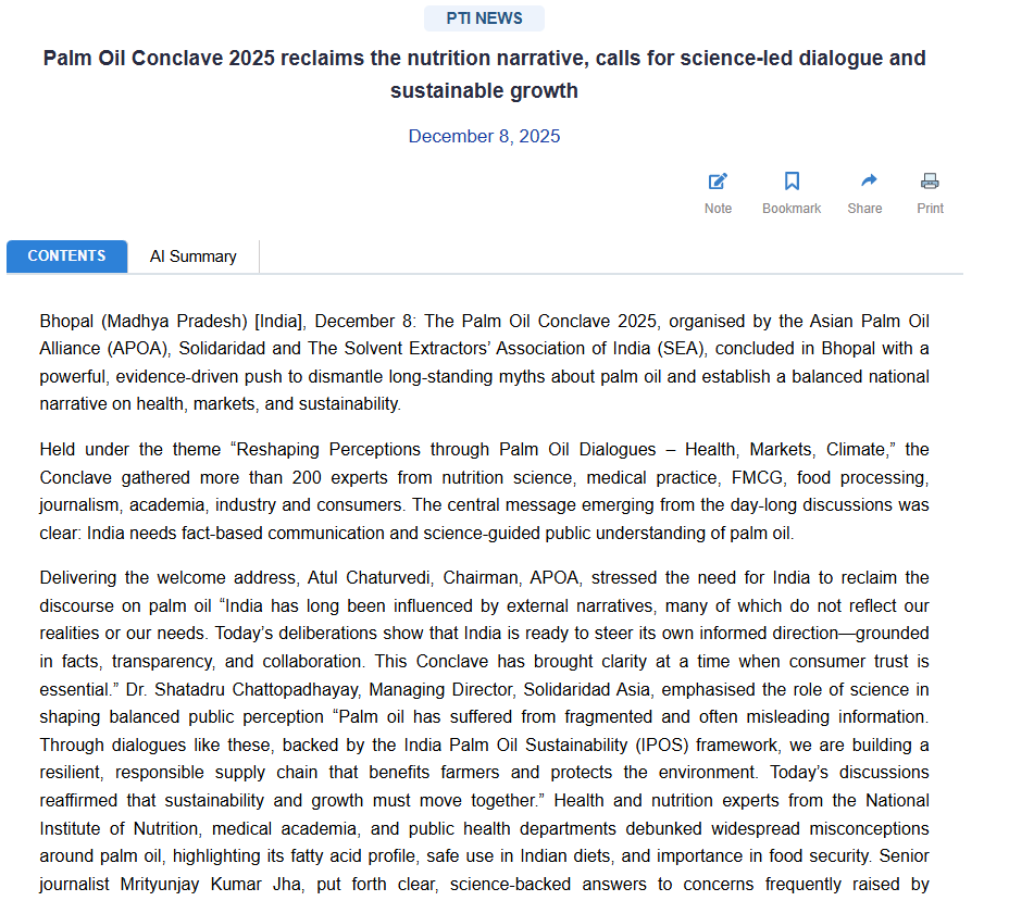 Dec 12,2025 Palm Oil Conclave 2025 Event Press Trust Of India Dec 12,2025 Palm Oil Conclave 2025 Event The Wire Dec 12,2025 Palm Oil Conclave 2025 Event The Week Dec 12,2025 Palm Oil Conclave 2025 Event PTI News Dec 12,2025 Palm Oil Conclave 2025 Event ANI News Dec 12,2025 Palm Oil Conclave 2025 Event Business Standard News Dec 12,2025 Palm Oil Conclave 2025 Event India News Dec 12,2025 Palm Oil Conclave 2025 Event News X World Dec 12,2025 Palm Oil Conclave 2025 Event My Nation Dec 12,2025 Palm Oil Conclave 2025 Event Ahmedabad Mirror Dec 12,2025 Palm Oil Conclave 2025 Event The Daily Guardian Dec 12,2025 Palm Oil Conclave 2025 Event The Print Dec 12,2025 Palm Oil Conclave 2025 Event The Tribune India Dec 12,2025 Palm Oil Conclave 2025 Event Latestly News Dec 12,2025 Palm Oil Conclave 2025 Event UP18 News Dec 12,2025 Palm Oil Conclave 2025 Event the Blunt Times Dec 12,2025 Palm Oil Conclave 2025 Event Lokmat Times Dec 12,2025 Palm Oil Conclave 2025 Event First India News Dec 12,2025 Palm Oil Conclave 2025 Event United News oF India Dec 12,2025 Palm Oil Conclave 2025 Event English Loktej Dec 12,2025 Palm Oil Conclave 2025 Event Daily Hunt Dec 12,2025 Palm Oil Conclave 2025 Event Web India News Dec 12,2025 Palm Oil Conclave 2025 Event Daily Prabhat