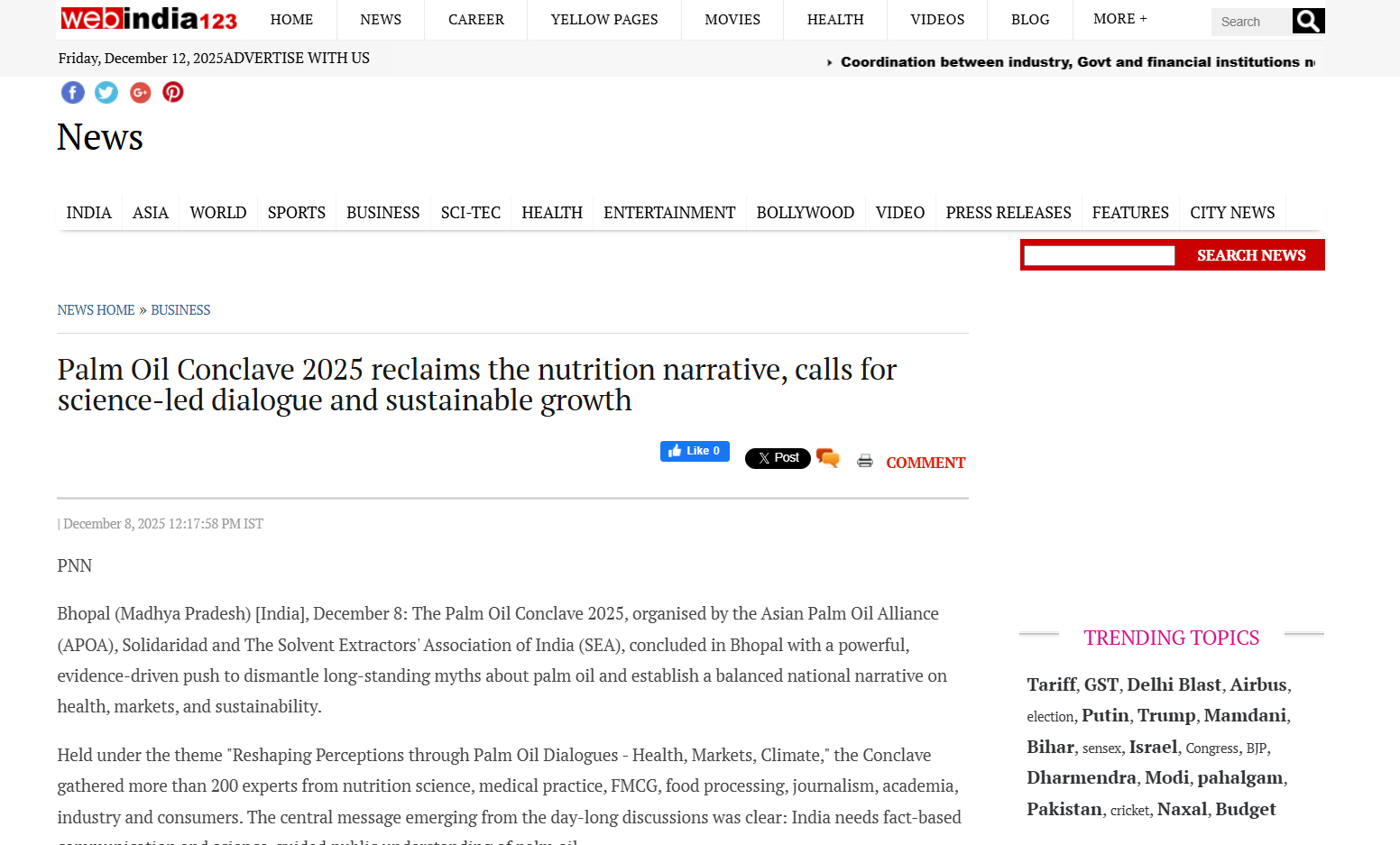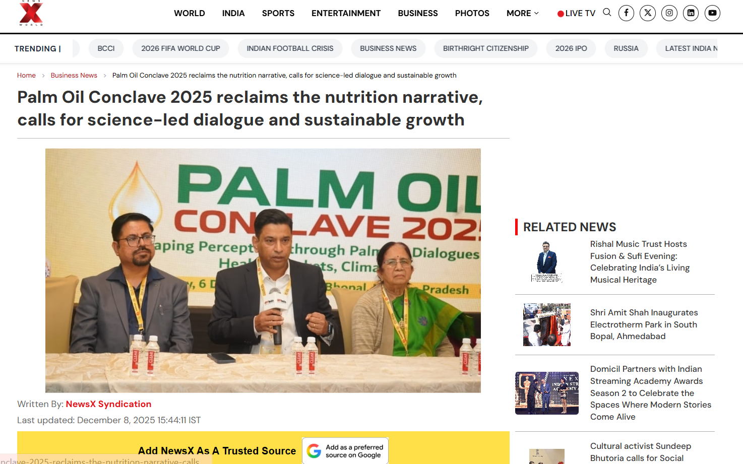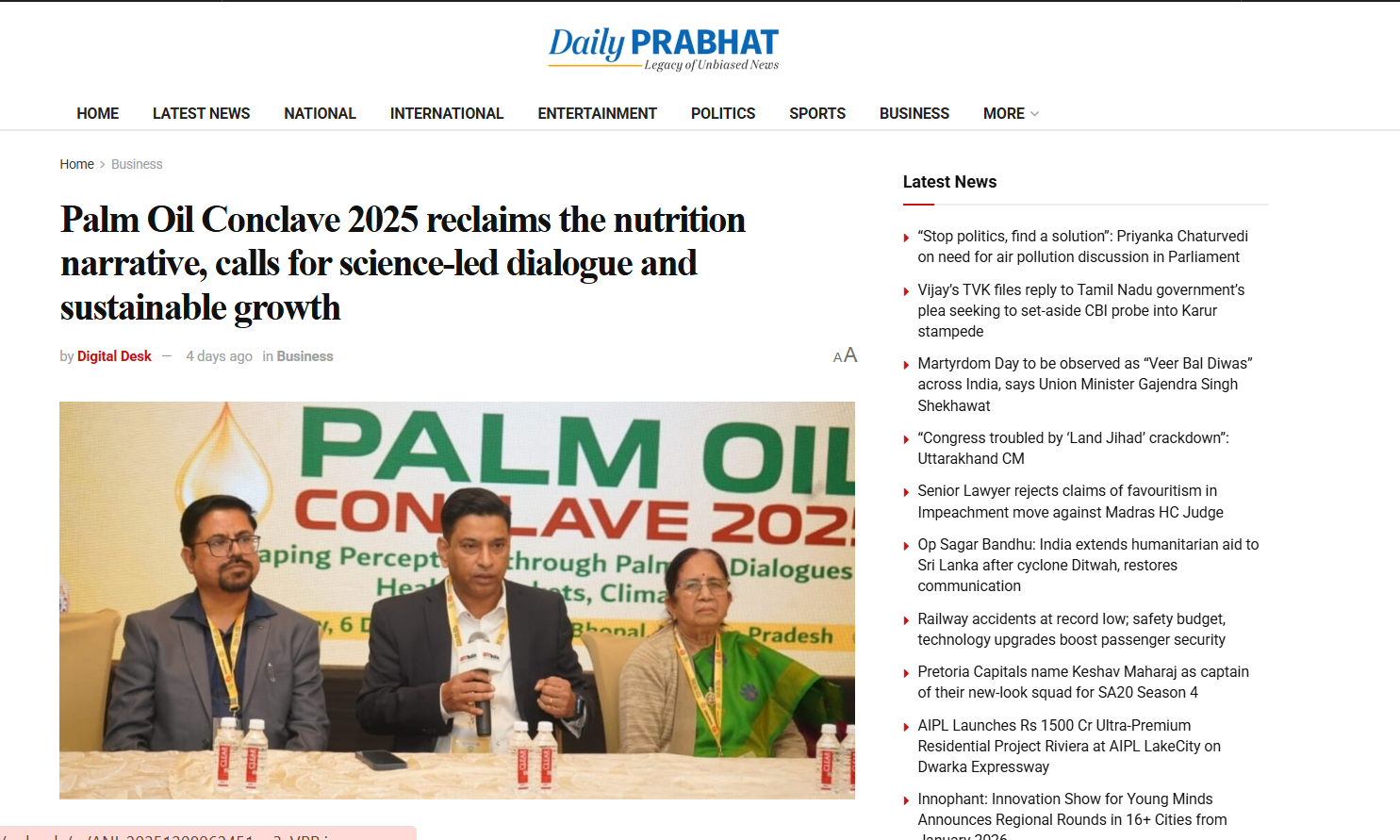 Dec 12,2025 Palm Oil Conclave 2025 Event Press Trust Of India Dec 12,2025 Palm Oil Conclave 2025 Event The Wire Dec 12,2025 Palm Oil Conclave 2025 Event The Week Dec 12,2025 Palm Oil Conclave 2025 Event PTI News Dec 12,2025 Palm Oil Conclave 2025 Event ANI News Dec 12,2025 Palm Oil Conclave 2025 Event Business Standard News Dec 12,2025 Palm Oil Conclave 2025 Event India News Dec 12,2025 Palm Oil Conclave 2025 Event News X World Dec 12,2025 Palm Oil Conclave 2025 Event My Nation Dec 12,2025 Palm Oil Conclave 2025 Event Ahmedabad Mirror Dec 12,2025 Palm Oil Conclave 2025 Event The Daily Guardian Dec 12,2025 Palm Oil Conclave 2025 Event The Print Dec 12,2025 Palm Oil Conclave 2025 Event The Tribune India Dec 12,2025 Palm Oil Conclave 2025 Event Latestly News Dec 12,2025 Palm Oil Conclave 2025 Event UP18 News Dec 12,2025 Palm Oil Conclave 2025 Event the Blunt Times Dec 12,2025 Palm Oil Conclave 2025 Event Lokmat Times Dec 12,2025 Palm Oil Conclave 2025 Event First India News Dec 12,2025 Palm Oil Conclave 2025 Event United News oF India Dec 12,2025 Palm Oil Conclave 2025 Event English Loktej Dec 12,2025 Palm Oil Conclave 2025 Event Daily Hunt Dec 12,2025 Palm Oil Conclave 2025 Event Web India News Dec 12,2025 Palm Oil Conclave 2025 Event Daily Prabhat
